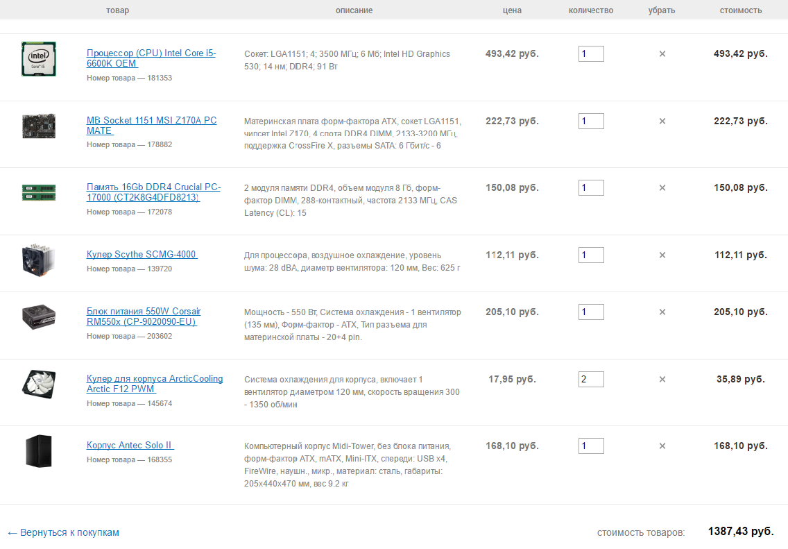 1 - БП Corsair CS550M 550W 2 - Core i5 6600K 3 - ASUS Z170-А (сначала смотрел на ASUS Z170-K, но там только три 4-пиновых разъема для подключения кулеров, включая процессорный. Может там есть 3-пиновые разъемы для корпусных вентиляторов, где это можно посмотреть? Пришлось обратить внимание на ASUS Z170-А). 4 - Samsung 16GB DDR4 PC4-17000 [M378A2K43BB1-CPBD0] (может лучше две планки по 8Гб? Разгон памяти не важен, главное, чтобы не мешала разгону процессора). 5 - Кулер Thermalright TRUE Spirit 140 BW Rev.A 6 - Корпус Fractal Design Define S Window