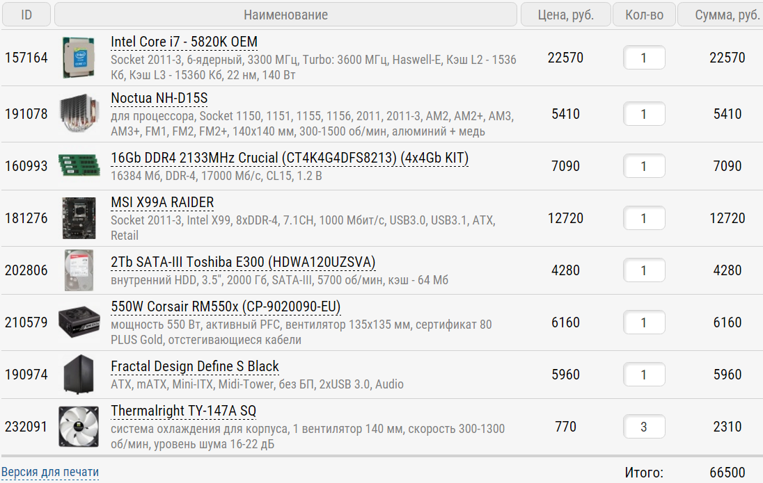 Здравствуйте, накидал конфиг для игр под разгон. Мультиплеер BF1 64 человека, WD2, Forza Horizon 3 и другие. Монитор 144 герца 1440п. ССД, корпус и видеокарта 1070 уже есть. Нормальный конфиг или стоит что-то заменить? Магазин регард. Процессор Intel Core i7 - 5820K OEM 22 570 руб. Материнская плата ASRock Fatal1ty X99 Professional Gaming i7 16 660 руб. Оперативная память 4Gb DDR4 2400MHz Samsung 4 штуки 8520 руб. Кулер Noctua NH-D15S 5 410 руб. Блок питания 650W Corsair RM650x 7 060 руб. Жесткий диск 2Tb SATA-III Seagate SV35 (ST2000VX000) 5 090 руб. Итого 65к