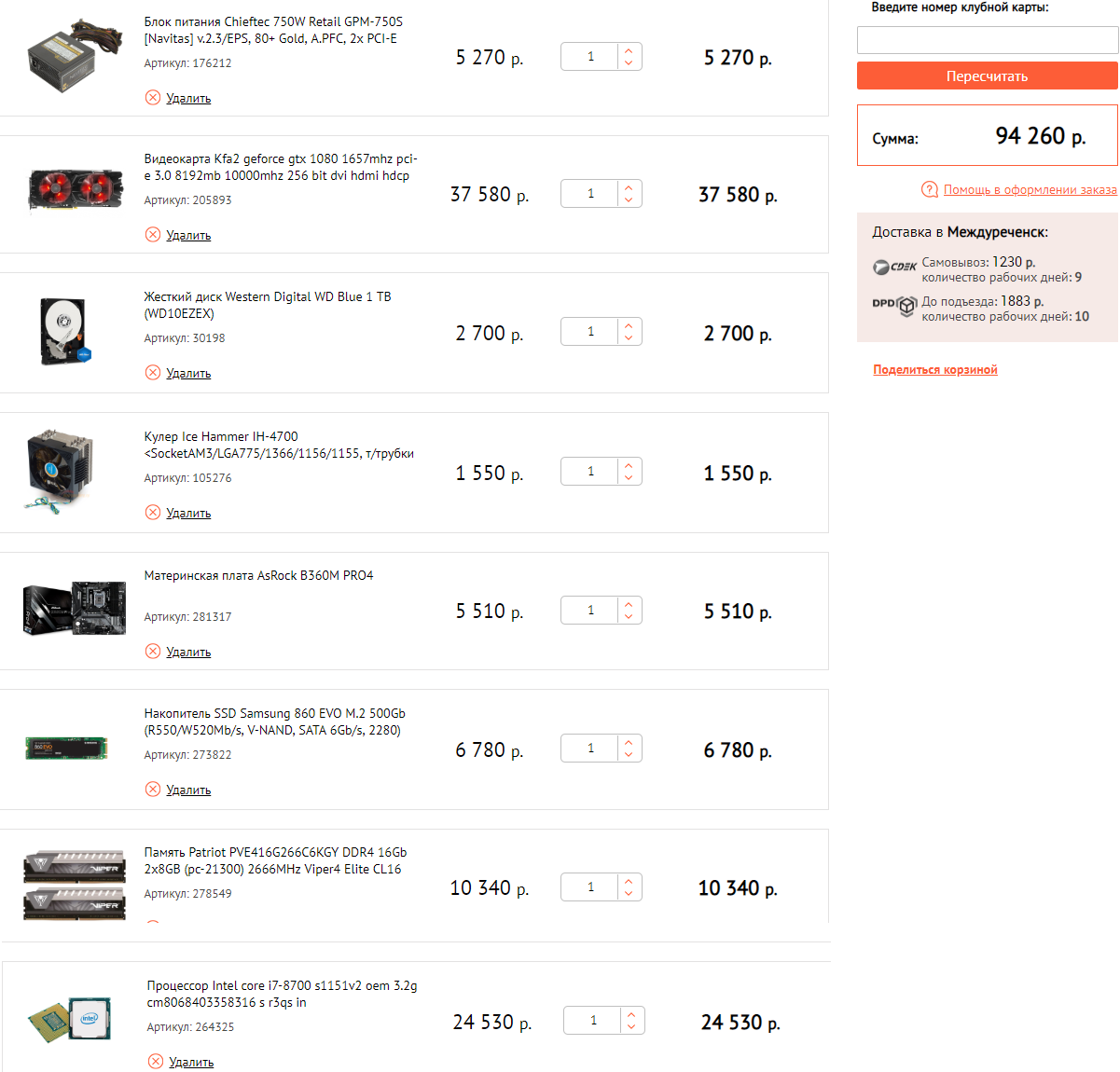 1) Бюджет 100к 2) Тут - http://www.oscomp.ru 3) Только системник 4) Игровой; разрешение 1920х1080,имеется HDMI 5) нет 6) системник нет, но возможна покупка монитора ~15к 7) 2 планки опреративы по 8гб HyperX Fury 8) предпочтения: проц-Intel; видео - asus/msi. Остальное без разницы. 9) В магазине набросали конфигурацию(на фото). Заранее спасибо.
