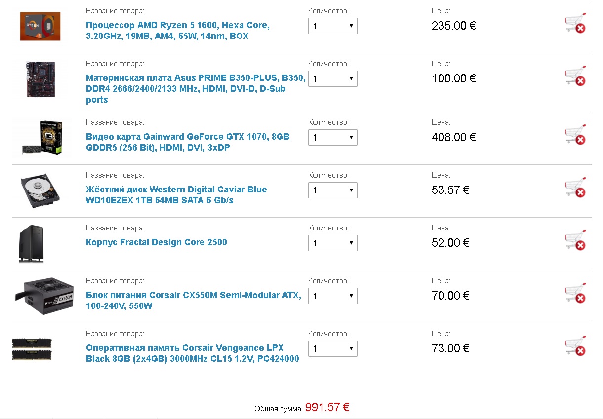 Здравствуйте, нашел где-то здесь вот такую сборку 1 Intel Core i7-6700K 4/8X 4.0-4.2GHz 1 MSI B150M PRO-VDH 1 DeepCool Gammaxx 400 2 8Gb 2133MHz CL15 1.2V Kingston (KVR21N15D8/8) или (KVR21N15S8/8) 1 250GB Samsung 850 EVO 1 1Tb Seagate ST1000DM010 1 Nvidia GTX 1070 8Gb GameRock или Jetstream 1 Zalman ZM600-TX 600W 80+ 1 Zalman R1 ATX Насколько она ещё актуальна или можно что-то поменять Если что монитор хочу взять такой ViewSonic VX2452MH. Живу в Подмосковье, считай Москва.
