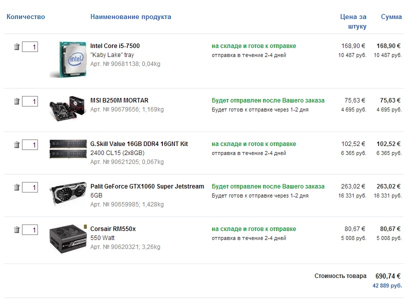 Написано что всё это стоит около 80, бюджет соответственно такой же. Там кстати в более мощной сборке написано взять процессор Intel Core i5-7500 4/4X 3.4-3.8GHz. На ComputerUniverse заказывать не думал, но почитаю что там, да как там. А монитор за такую цену разве лучше найдешь.
