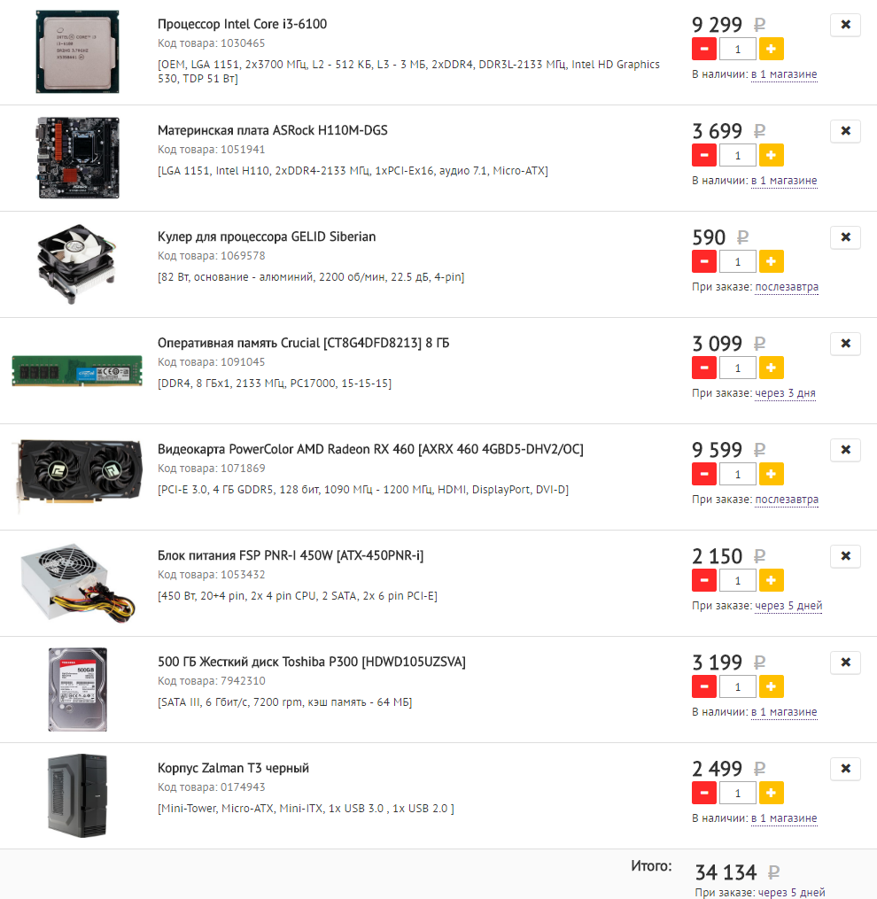 Видеокарту можно RX460 4Gb, памяти 8ГБ потом добавите столько же, в корпусе (T1) один 92 mm кулер на выдув может не справится, лучше так по Технопоинту: