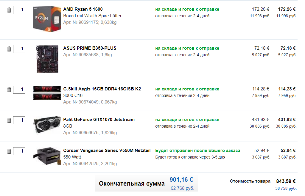 Накидал в CU вот такую сборку, ЖД будет докупаться отдельно у нас.