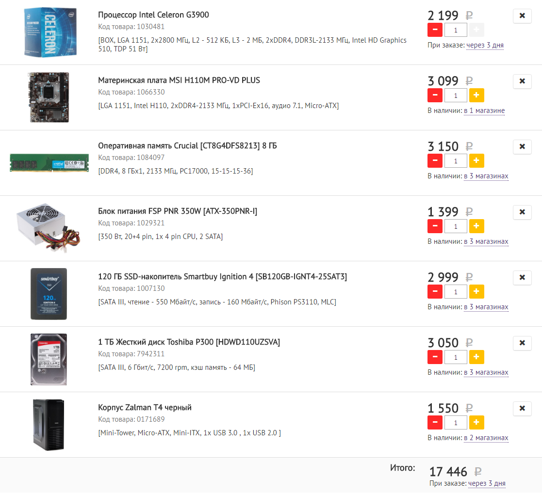 1) 20-30. 2) http://www.citilink.ru, Москва. 3) Только системник. 4) Компьютер для офиса. Постоянно открытый браузер Chrome + Скайп + WhatsApp + всякие приложения типа Key Collector, Word и Excel, Mind map. 5) Нет. 6) Нет. 7) Нет. 8) - Не ниже i5. 9) К сожалению нету. Заранее благодарю. Коробочка исключительно для работы. Чтоб спокойно держал несколько программ открытыми и спокойно позволял в них работать.