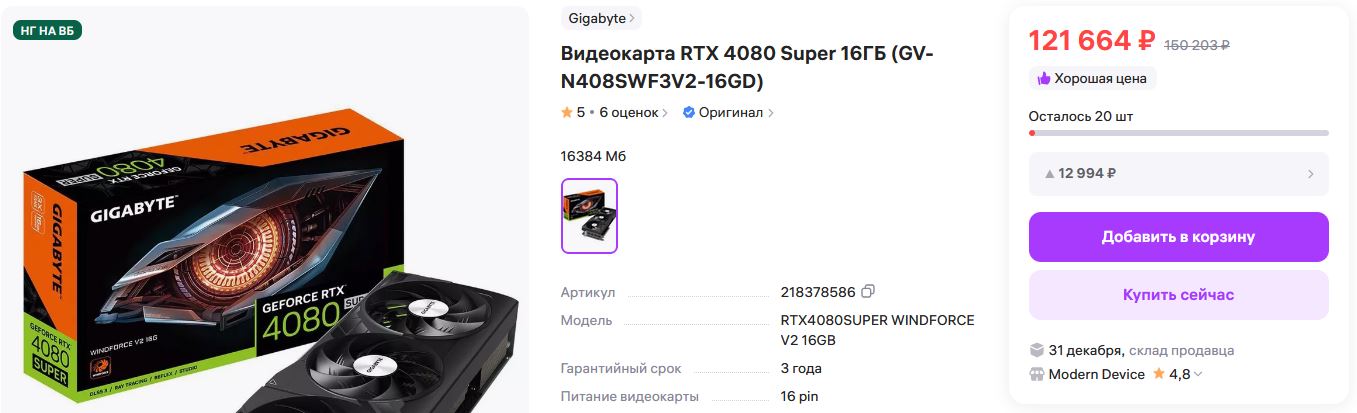 По поводу цены 95к на RTX4080S, я в течение года периодически подбирал железо (да и сам собирал компьютеры), но не помню чтобы RTX4080S были прям дешевле 100 тысяч. Все разы что я смотрел, цены были в районе 105-115 тысяч, только один раз осенью видел в Ситилинке за 99 тысяч с копейками.