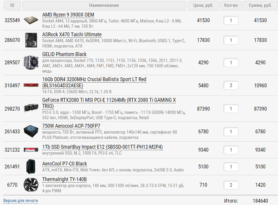 1) ~200К 2) г. Москва. Хочу, что бы все комплектующие были с одного сайта. На данный момент я рассматриваю https://www.regard.ru. Если у вас есть другой любимый интернет магазин с адекватными ценами, то я не против его рассмотреть. 3) Только системник 4) Для игрушек 5) Разгон не планирую 6) Обновлять не планирую 7) Неа 8) Хочу по максимуму вложиться в процессор, так как менять в системе процессор тот еще геморрой(заменять мамку, все это перетыкать...)=> мой выбор пал на AMD Ryzen 9 3950X, которого хватит ну очень на долго. В качестве графики хочу взять Radeon RX 5700 XT, которой по идее для моих нужд хватить должно, ну а если ее не будет хватать, то легко поменяю. 9) Набросал себе вот такую конфигурацию: