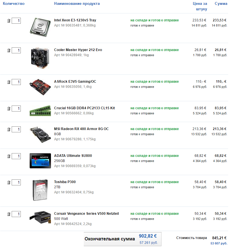 Видеокарта: ASUS Radeon RX 480 STRIX (MSI дешевле, но к видеокартам их производства личная неприязнь) - https://www.computeruniverse.ru/product ... gaming.asp - 16800 р.