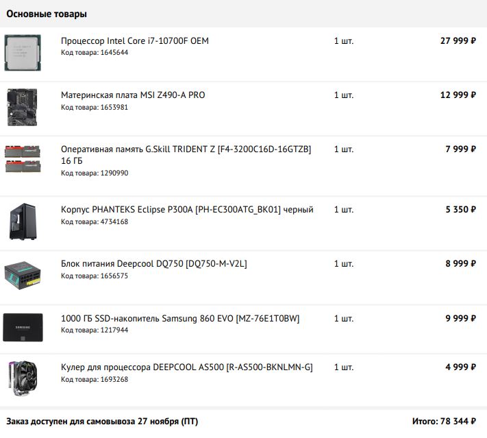 Vss да, процессоры вышли хорошими. В сборке, кстати, забыл написать, Core i7 10700 можно скинуть и поменять на Core i5 10600K, по производительности не намного ниже, чем Core i7 10700, зато выигрываем в деньгах. Разницу лучше вложить в видеокарту. Кстати, Ryzen 5000-й серии уже есть в продаже. Тот же Ryzen 5 5600X можно взять как конкурент более дорогому Core i7 10700k
