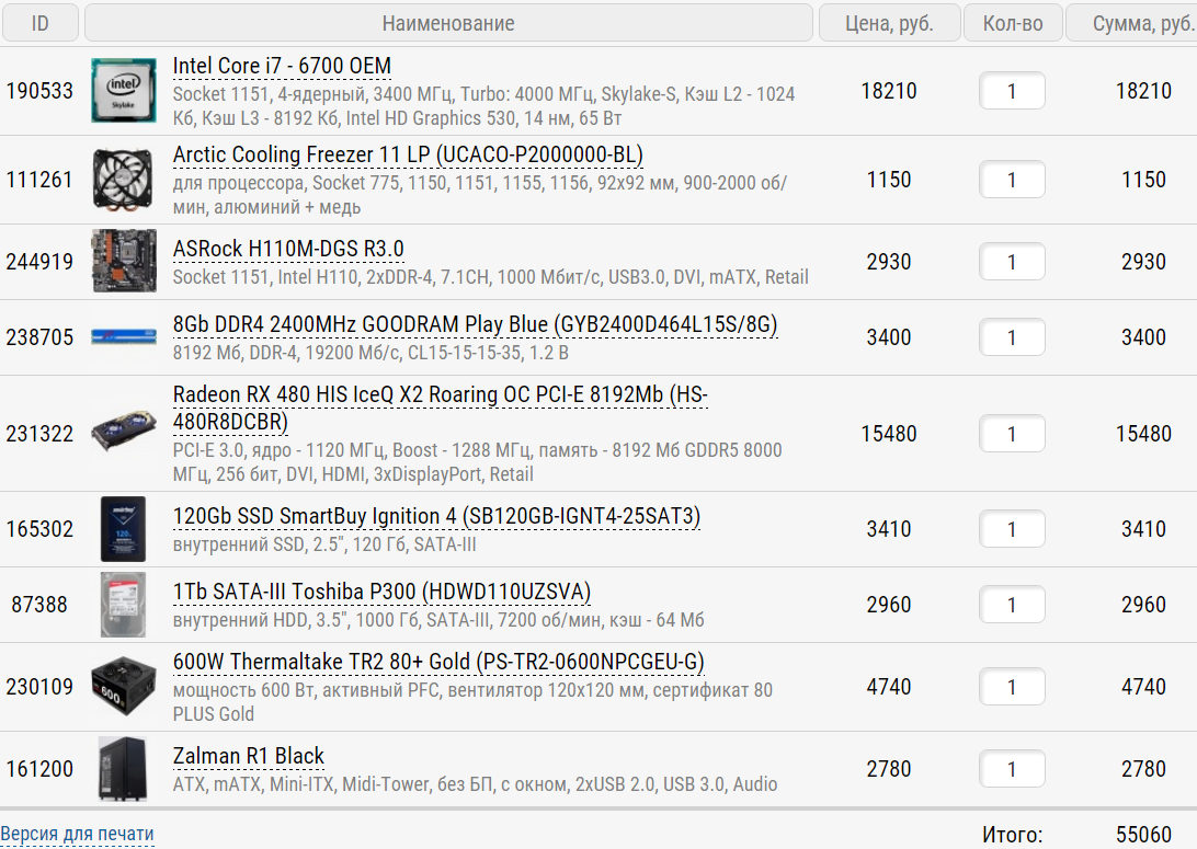 1. 50-55 тыс. рублей. 2. Москва, regard, oldi, ogo, citilink. 3. Только системник. 4. Система под современные игры. Монитор full hd. 5. Разгон не планируется. 6. Апгрейд не планируется 7. - 8. - 9. #77 Итого 49960 р по регарду.
