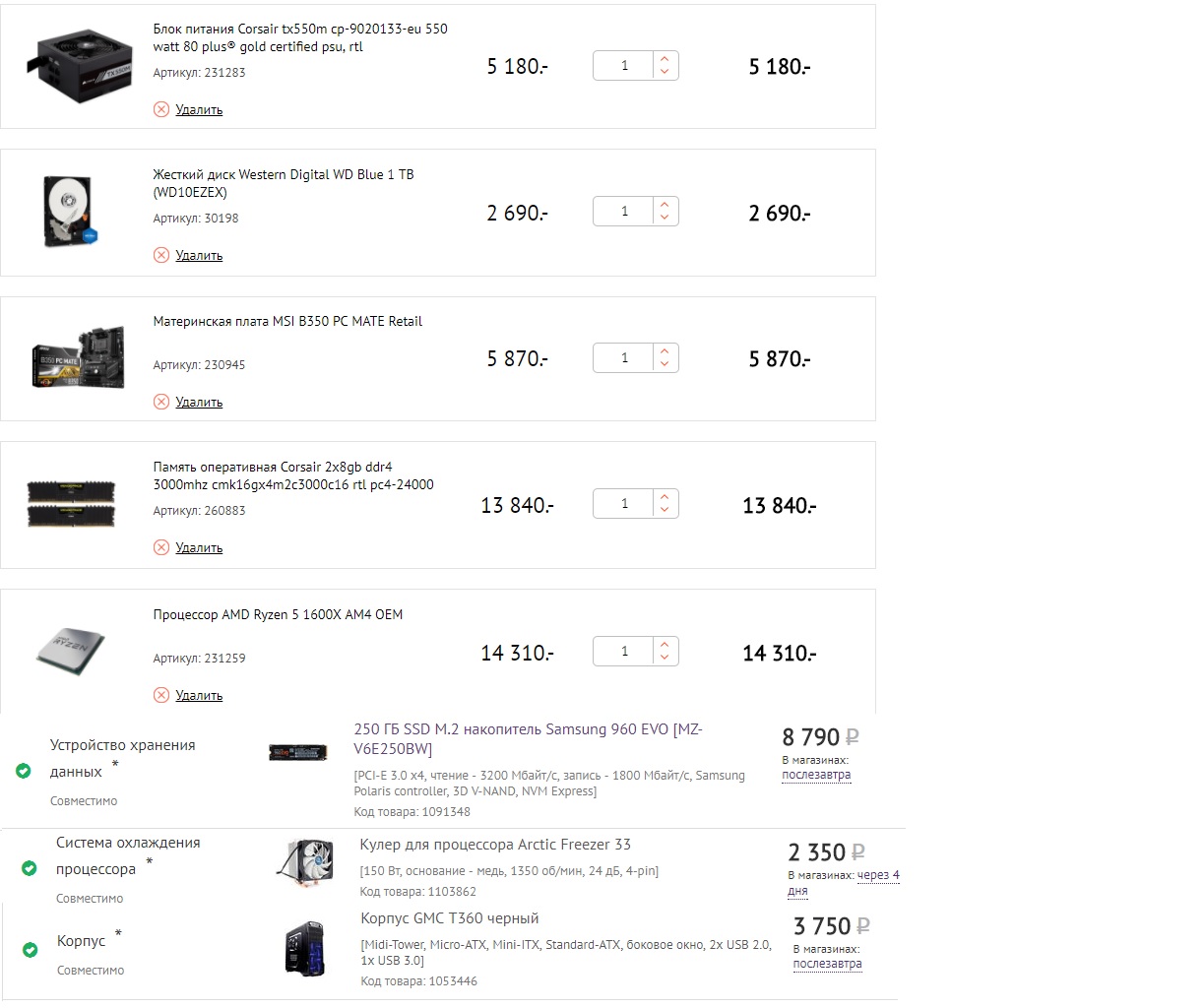 Спасибо за ваши отзывы, сейчас поменял конфиг, вылез конечно из "запланированного" бюджета но не критично. 1. Поменял БП на более "серьезный" да и его часто здесь советуют. 2. WD Blue... ну как сказать, я с ними уже давно работаю и никаких претензий к ним нет, как по мне нормальная такая "файлопомойка". 3. Выбрал MSI B350 PC Mate у нее много хороших отзывов в том числе и здесь, я так понимаю и разгон без фанатизма она потянет. 4. А вот с ОЗУ проблем куда больше, лезть в CU сейчас за Trident Z не очень хочется по причине загруженности CU и возврата заказов с разницей в деньгах из-за курса, а вот что выбрать в РФ? тот же мегабит/технопоинт. 5. Arctic Freezer 33 должен справиться с разгоном но....много жалоб на крепление? Извините за такое количество вопросов, но хочется собрать "один раз и нормально" без лишних танцев с бубном. Пока накидал примерно так: