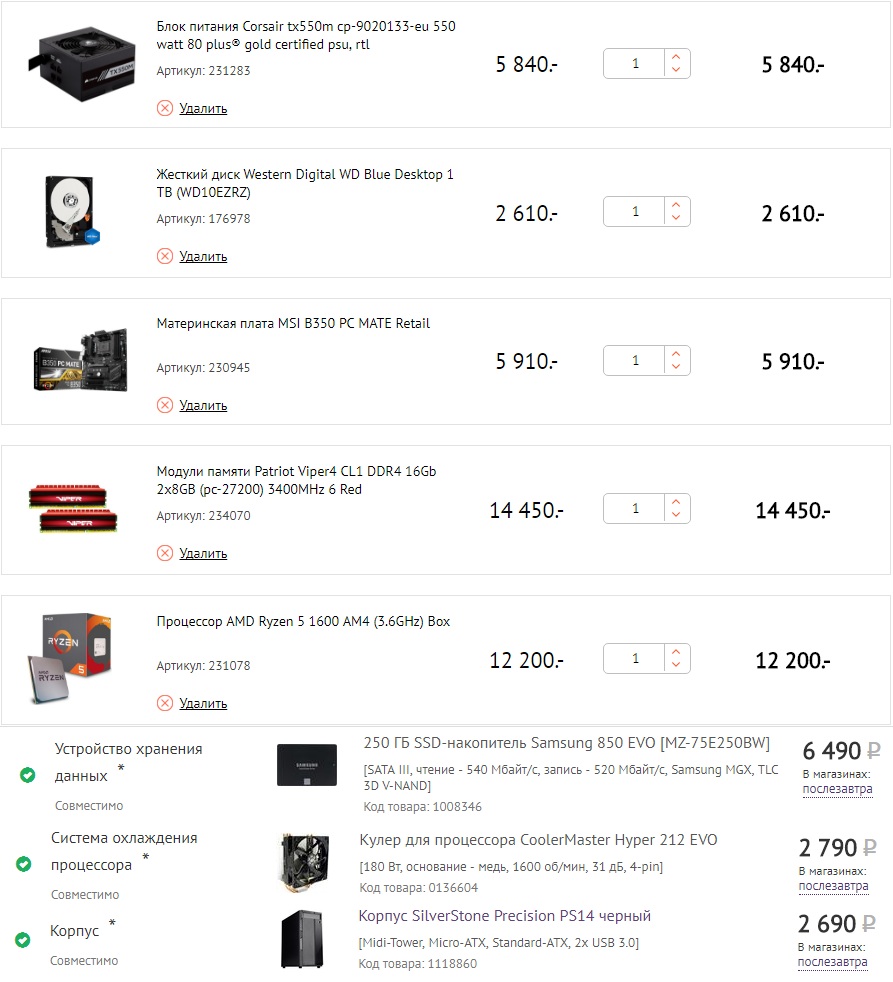 Всем еще раз огромное спасибо за ваши отзывы и советы, отдельное спасибо Noveon. Да уж про корпус действительно можно сказать, что "сколько людей столько и мнений", в итоге пока остановился на варианте SilverStone Precision PS14 + докуплю 1 x 120мм и 2 x 140 мм. Крепеж для кулера: https://technopoint.ru/product/1a726992 ... 2-s1-sale/ Просьба посмотреть на сборку еще раз и если нигде не "накосячил" с совместимостью, то завтра буду заказывать.