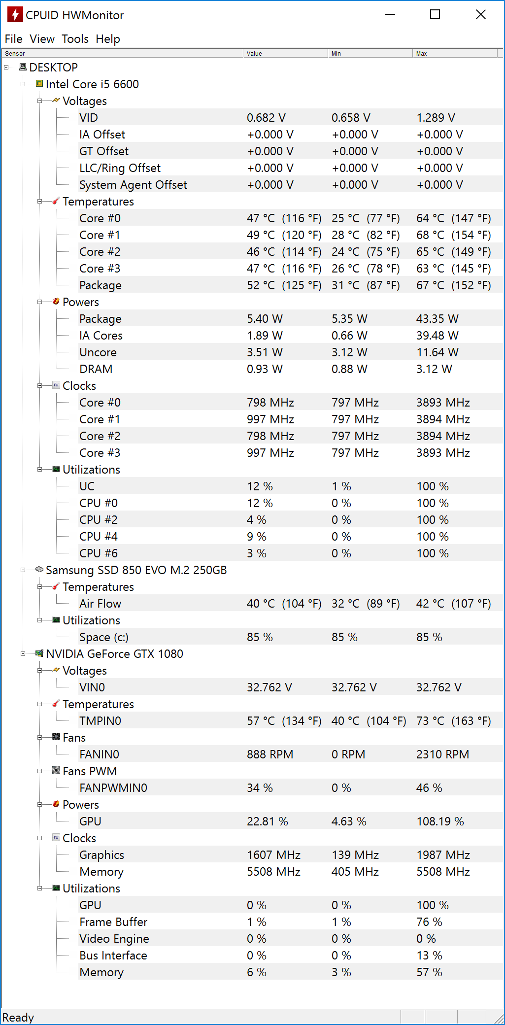 Нет конечно =) GTX1080 и пассивное охлаждение вещи пока несовместимые, но кожух снять и проверить до скольких прогреется это обязательно сделаю, а всё остальное да, вентиляторов нет. Хотя и греться то особо нечему, ЦП только если, сейчас вот до 70 прогревается, летом до 80 доходит, но там и в комнате за 30, ничего удивительного. Это например после 30 мин GTA5/The Witcher3