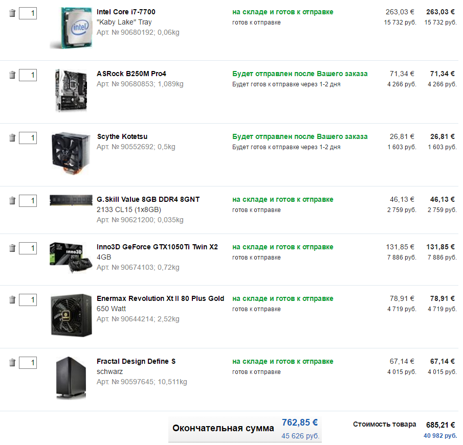 Монитор, жесткие и ссд не нужны. Лимит сборки 45тыс на computeruniverse.ru. Ищу способ как можно сэкономить на сборке, либо чтобы ткнули где лучше добавить, процессор и видео карта именно эти. Видео карта потом уедет в другой компьютер, а на ее место встанет 1070. Могу и в древний корпус на первое время запихать все это дело.