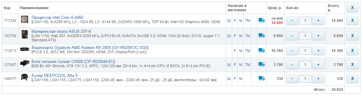 Вы город всё-таки укажите, а то Регард, на сколько я в курсе, пересылкой не занимается, а ассортимент Ситилинка, Юлмарта, Никса, ДНС и подобных сетевых магазинов очень зависит от города.