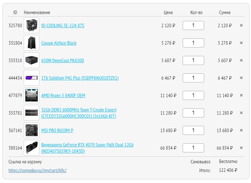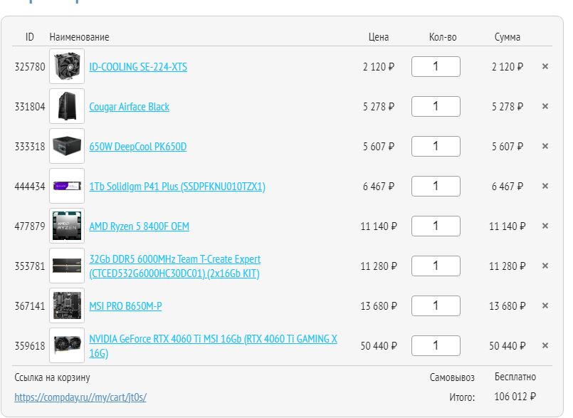 Не, ну если в регарде собирать, то да, будет дороже. С озона/вб (плюс другие магазины) в сотку можно уложиться. А так тема не про сборку с нуля, поэтому нет желания скидывать списки с ценами.