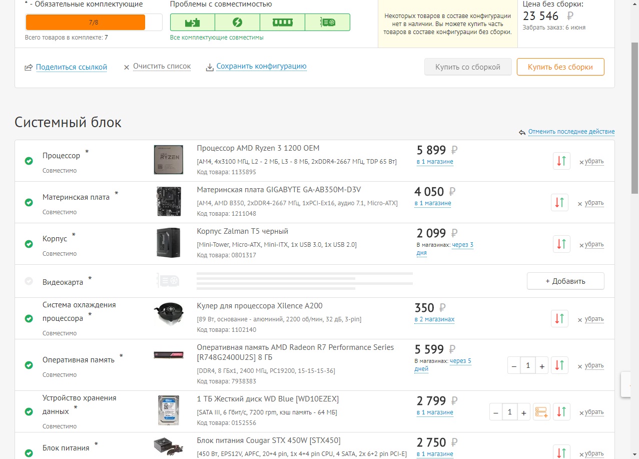 Помогите дособрать сборку на ryzen 1200. Видеокарту докуплю позже 1050ti. Позиции по которым вопросы. Мать, самая дешевая на 350, мб лучше купить на а320 чипсете, если разгон апгрейд не планирую. Оперативная память самая дешевая ддр4 на 8гб одной планкой в дальнейшем докуплю еще одну, с производителем не могу до конца определиться их более чем много за цену 5600-6000 . Гнать не планирую, слышал что нужна для райзена двухранговая память, но самсунг что-то дорого стоит у нас. Жесткий диск WD или toshiba p300, разницы между ними как я понял никакой, лотерея как повезет, выбрал wd потому что дешевле на две сотни . Тоже самое с процессором, боксовая версия стоит на тысячу дороже ОЕМ. Бюджет 24к https://www.dns-shop.ru/conf/479dcbecca9d375a/