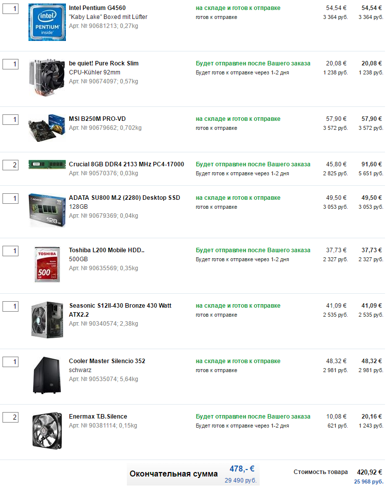 Но все-таки... Если рассмотреть (как вариант) десктопный конфиг. Вот некоторое урезание моего варианта (на 11000 руб. дешевле). Как думаете, не отразится на тишине и надежности?