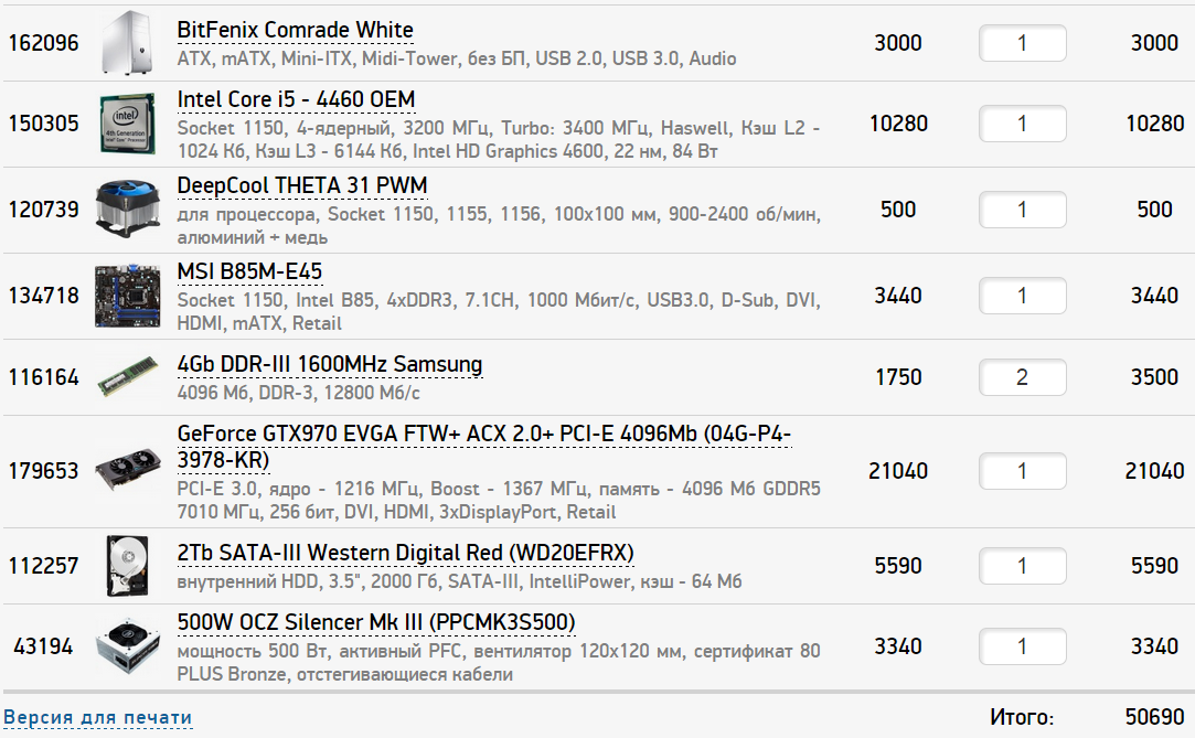 3.2. Процессор. Тут дилемма посложнее: intel Core i5-4460 OEM - самый бюджетный вариант в плане цена/качество. - 11000р intel Core i5-4690 OEM - быстрее на 300МГц в штатном режиме и в целом по тестам производительность повыше на 5-10%, поэтому больше склоняюсь к данному варианту. - 13500р intel Core i5-4690K OEM - как понимаю, если не планирую разгон то вообще нет смысла переплачивать 2к, да? - 15500р