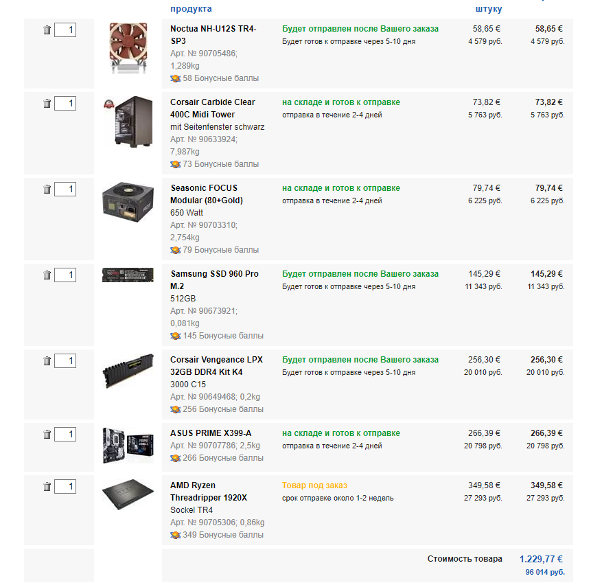 Добрый день. Собираюсь заказывать системник с CU.