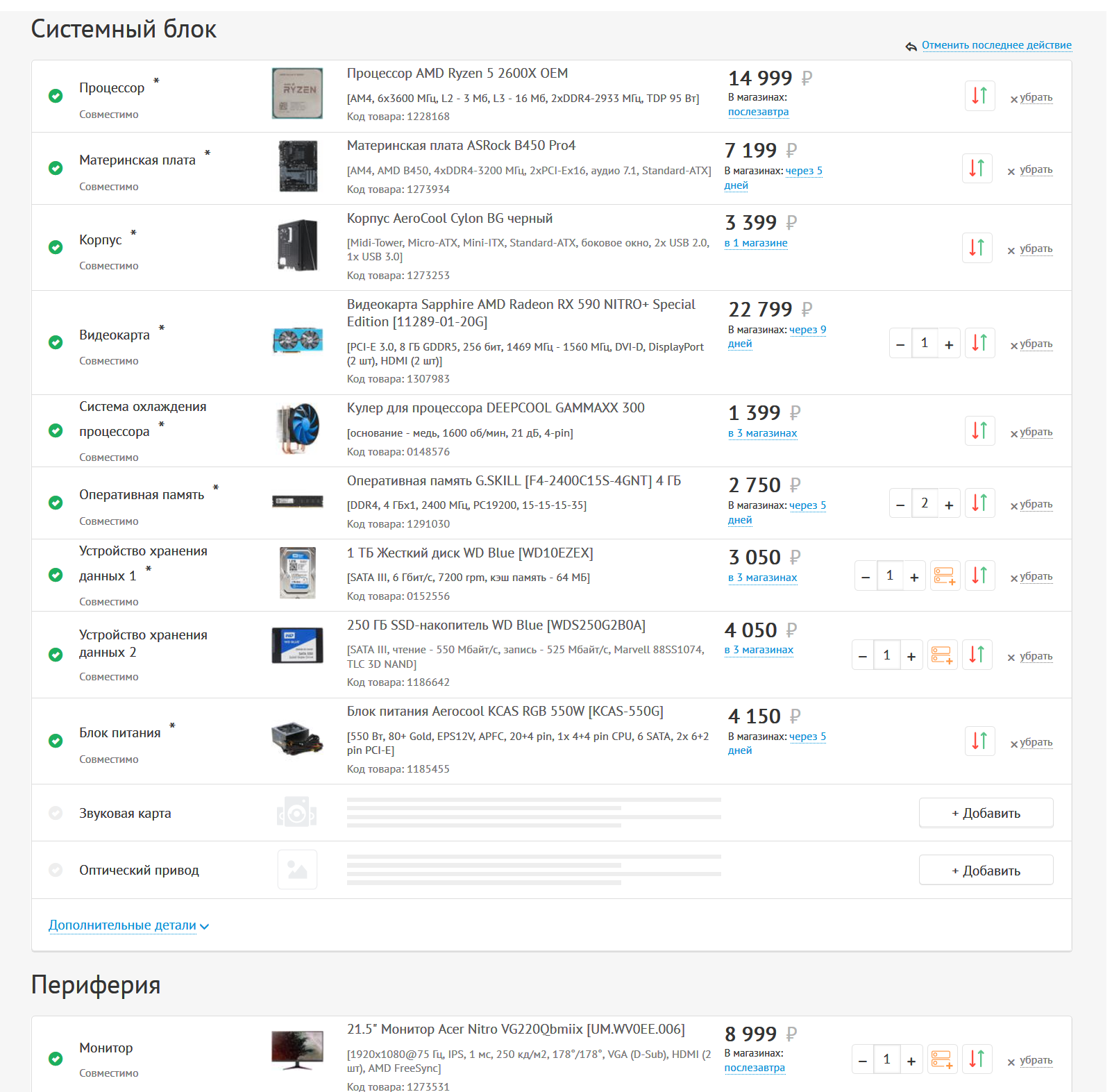 MedForce Монитор обычный Full HD (без фич типо free sync если вы об этом). В том то и дело, что разгон не планирую, а 2600x уже их коробки разогнана. По памяти наверное 3200 перебор, взял такую и в целом подкорректировал сборку.