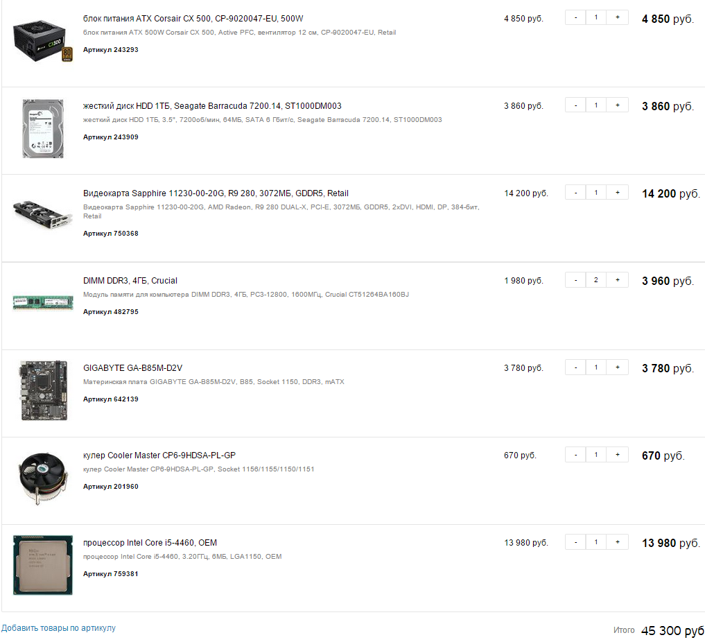 Psyhooo При нынешних ценах на железо 40-45 руб, это не та сумма, чтобы заглядывать куда-то далеко. Если брать проц+мать+память - это морально устаревает не так быстро, но только в том случае, если проц брать хотя бы мидл, например i5-4690K и мать под него для разгона, чтобы в дальнейшем м.б. производительность увеличить без капиталовложений. Кроме этого, для разгона нужен мощный кулер. В наст.время саязка проц+мать+кулер= 30 руб, т.е. суммы в 40-45 не хватит.