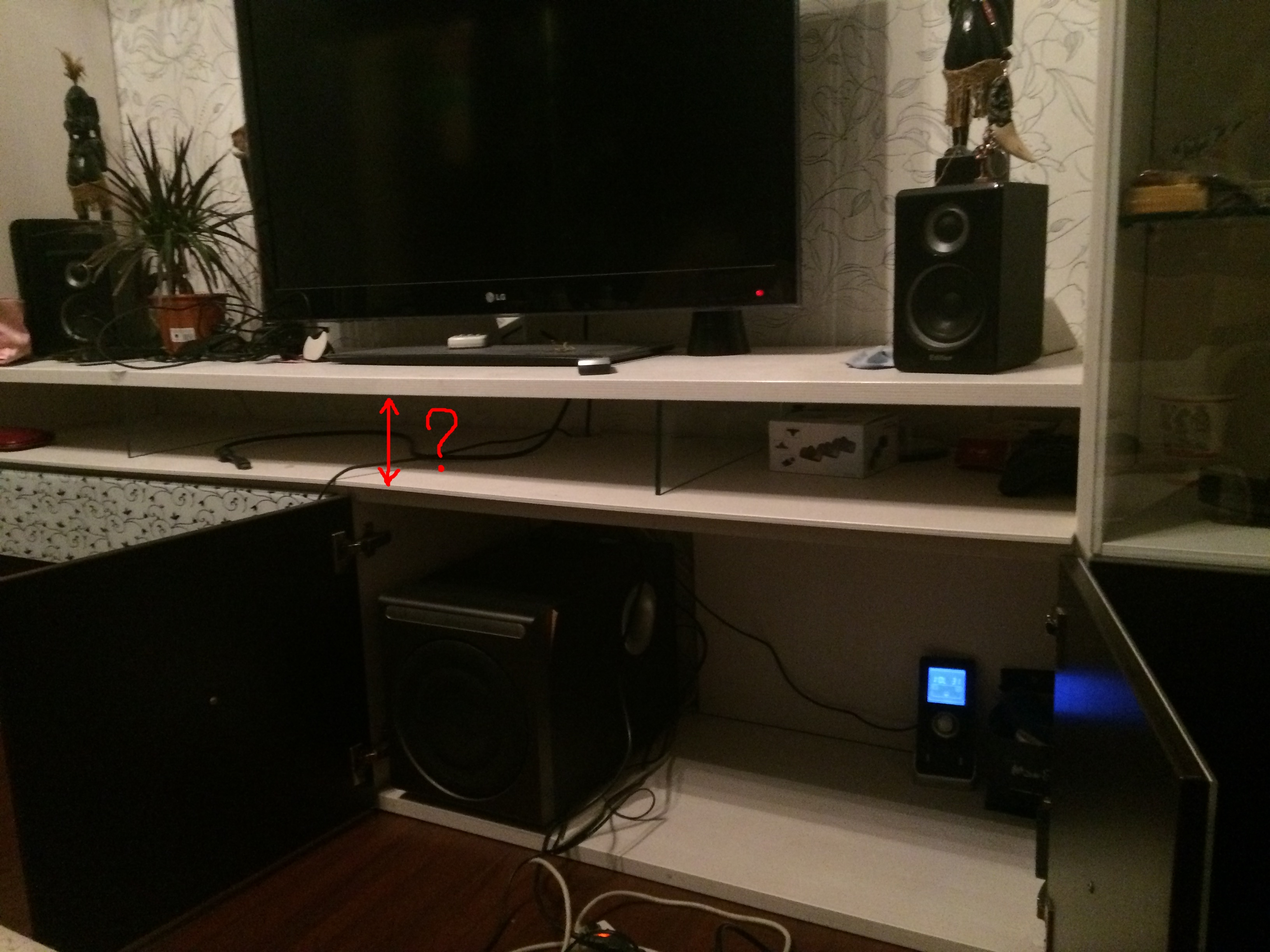 kurdik так у вас он закрыт! Это не важно, какой будет корпус и сколько в нём кулеров, пока ваш шкафчик будет закрыт. И если я правильно рассмотрел, то ДВП отсутствует только за сабвуфером? Вообще, представьте: у вас в закрытой тумбочке в игре будет выделятся около 300 Ватт в час, это 3-и 100-ватные лампочки - они же там поджарят сами себя. Сколько у вас зазор между задней стенкой мебельной стенки и стены? И какая высота ниши между шкафчиком и телевизором (или сразу под телевизором)?