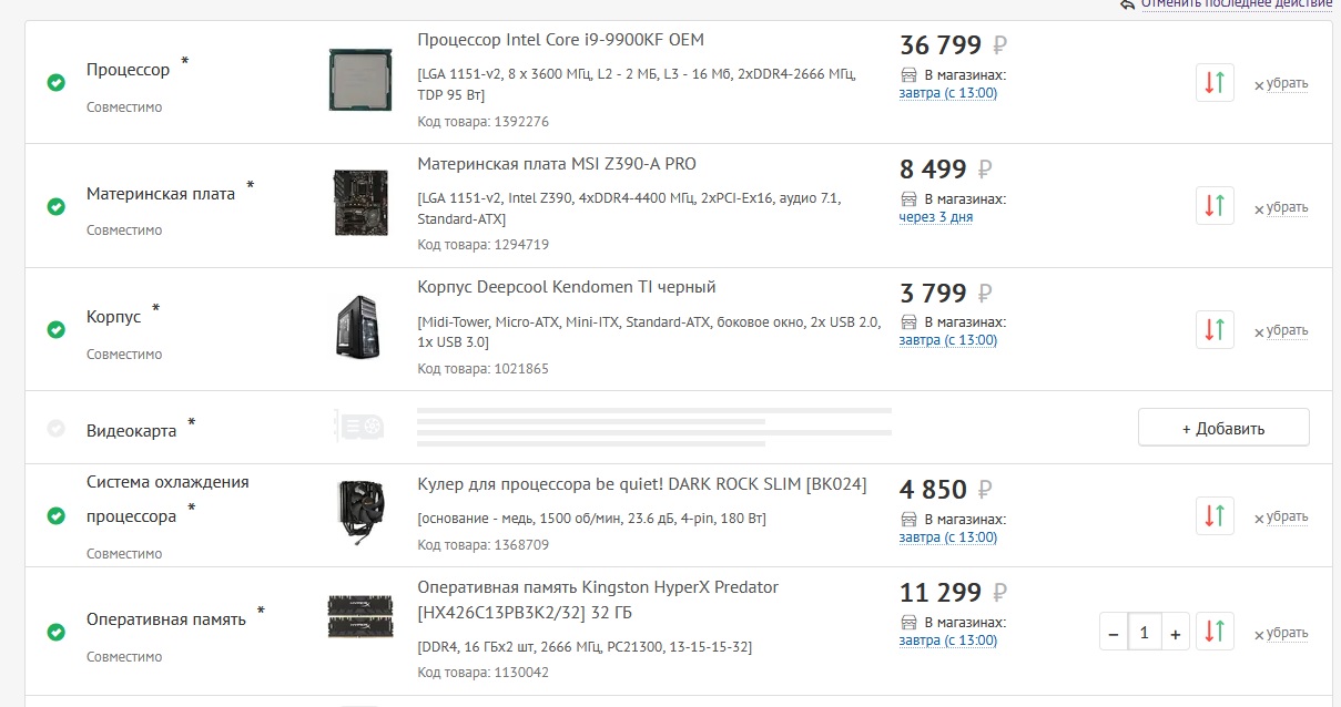 какой город, под что комп? материнка mAtx в ATX корпус, зачем? присмотрите ATX материнку имхо можно проц взять и ryzen 2600 видео можно 2070супер и подешевле найти, тысяч на 5 кулер можно попроще, райзен не такой уж горячий