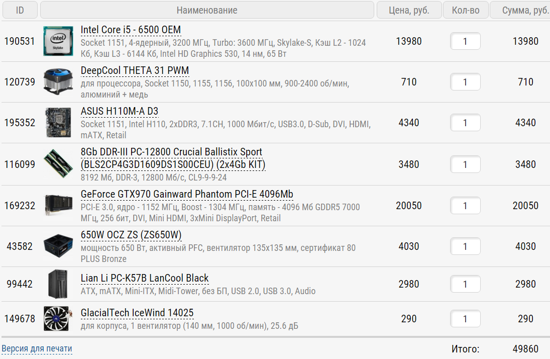1) 40 - 45 тысяч (самый максимум: 50) 2) http://www.dns-shop.ru/, http://www.ulmart.ru/ Казань 3) Только системник 4) Для новых игр на средних (средне-высоких) настройках без проседания фпс, редактирование видео. Нужен комп с упором на проц. а) - 1920х1080, фильтрация особо не волнует - Ведьмак 3, новинки 2015 года 5) Разгон особо не планируется 6) Если получится, то апгрейдить буду для более комфортной работы на системе (но произойдет ли это в ближайшие 6 месяцев, не знаю) 9) Набросков нет