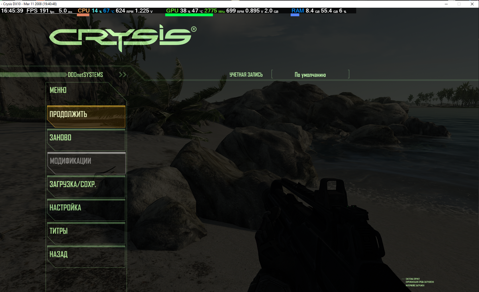 ох и кривая игрушка всё таки. не зря клала на колени тогдашние топы. кризис идёт. в среднем фпс у меня 120 при почти ненагруженных ЦП и ГПУ. изменений в физике макс и мин вообще не заметил. ни по фпс ни по разрушаемости лачуг