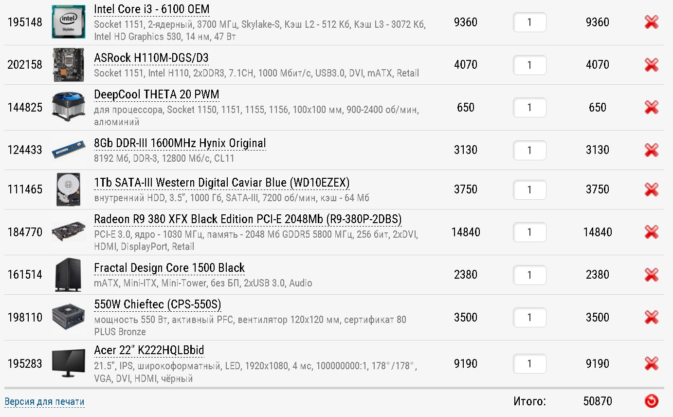 Пост оформлять следующим образом: 1) Бюджет 2) Линк(и) на прайс магазина(ов), где будете брать систему, обязательно укажите Город в котором будет покупаться. 3) Что собираетесь брать: - Только системник - Ситемник и монитор - Системник, монитор и переферия - Иные уточняйте какие варианты. 4) Указывайте для каких задач берётся сабж. а) Для игровых систем: - Указывайте разрешение монитора, частоту развертки, аппаратную синхронизацию (Free|G-Sync), есть на нём цифровые входы (HDMI|DVI|DP) или модель монитора, а также параметры анизотропной фильтрации и сглаживания, которые будут использоваться в играх. - Указывайте названия игр или хотябы жанры. б) Для систем, на которых будет слушаться Музыка: - Уточняйте, что за ММАС Мультимедийная Акустическая Система у Вас стоит или планируется к приобретению. - Уточняйте носитель/тип файлов/битрейт. - Уточняйте жанры Музыки. в) Для графических станций: - Уточняйте какой монитор используется. - Уточняйте с какими программами Вы будете работать. г) Иные. 5) Уточняйте планируете ли Вы разгон системы. 6) Уточняйте планируете ли Вы апгрейд системы в ближайшие 6 месяцев. Если планируете, то сообщайте когда и в каком объёме финансовых вливаний. 7) Если у Вас есть какое-то железо, которое Вы ещё планируете использовать, уточняйте какое именно. Если его много, то Вам в ветку по Апгрейду. 8) Если у Вас есть какое либо требования, уточняйте: - Брендовая принадлежность ATI/AMD или Abit/DFI, ets. - Требования по дизайну/размерам. - Требования по шуму. Уточняйте здесь. - Иные. 9) Наброски конфигурации ПК
