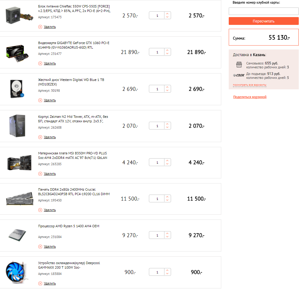 1) Бюджет: 50-55к 2) Казань, любой магазин (днс, юлмарт, ситилинк и пр.). На CU не решусь. 3) Ситемник и монитор. 4) Игры, современные и не очень. На далекую перспективу не претендую, видно, что бюджет не позволит. 5) Разгон по возможности, не принципиально. 6) Апгрейд, не хотелось бы. Но если что-то будет не влезать в бюджет, то докуплю позже. 7) Нет. 8) Брендовая принадлежность: вообще к AMD склоняюсь, но опять же, не принципиально (с таким бюджетом).