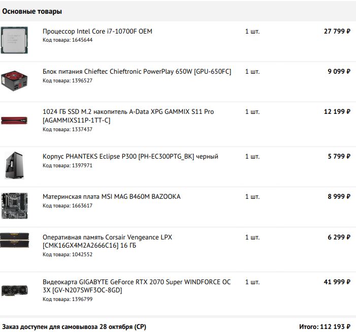 Выбирал всё в одном магазине, чтобы и там же собрали выбор позиций ограничен, но бегать по городу в поисках отдельных компонентов лениво.