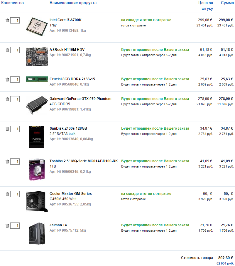 Можно заменить проц на 6700K (+7к). Если при этом отказаться от разгона, то можно взять плату https://www.computeruniverse.ru/product ... 1-matx.asp - 1.7к экономии. Брать 6700 не К не стоит ни при каких обстоятельствах, поскольку он на 600 (!!!) Mhz медленее 6700K даже без разгона последнего - разные штатные частоты. При этом разница в цене минимальна.