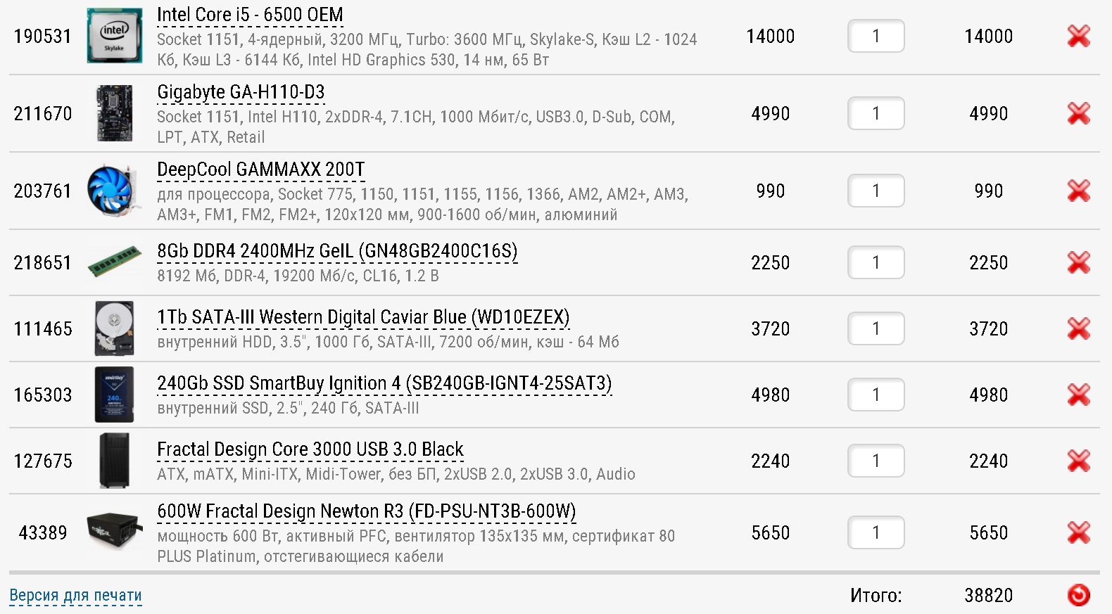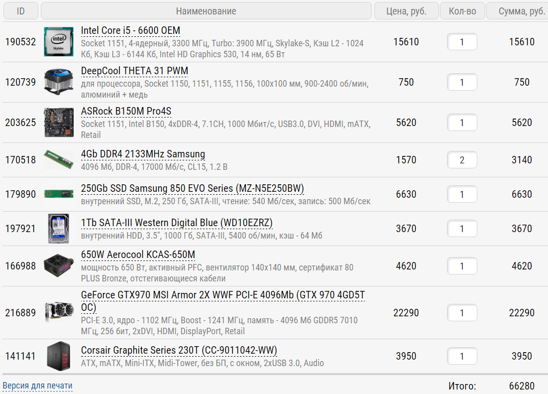 1) ближе к 60000, 65000 максимум 2) Санкт-Петербург. Ситилинк, Юлмарт 3) Что собираетесь брать: - Системник и монитор 4) Игры 5) Уточняйте планируете ли Вы разгон системы. Нет 6) Уточняйте планируете ли Вы апгрейд системы в ближайшие 6 месяцев. Нет 7) Железа нету. 8) Требований нет, оптимальный конфиг за свои деньги 9) Наброски конфигурации ПК http://www.citilink.ru/configurator/q7774946/ Только вместо i5 6400 i5 6500 и замена материнки на MSI B150M PRO-VDH.