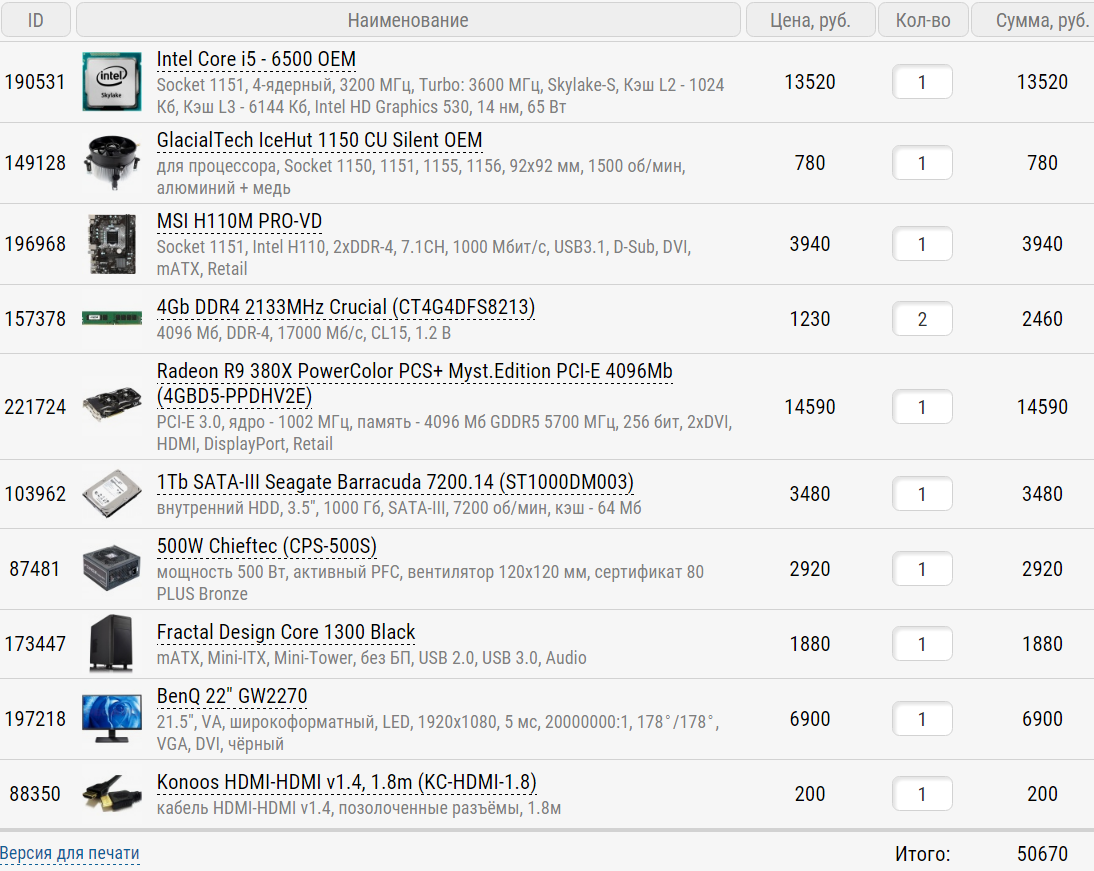 Кулер: http://www.regard.ru/catalog/tovar90077.htm на 60р дороже, но при этом тише и эффективнее во всех режимах. См, напр., местный тест. Материнка: я редко соглашаюсь с товарищем vork777, но тут он дело пишет. Я бы брал в идеале Asus Z170-A, а подешевле - MSI Z170-A Pro или Z170A PC Mate (последних, правда, в Регарде сейчас нет). ССД: я бы взял Trion 150 как более проверенный, но Firestone вроде тоже хорош. БП: ОК, можно и его взять, можно взять дешевле, а можно дороже и лучше. Корпус: в этот дополнительные вентиляторы не нужны. Есть и более дешевые варианты.