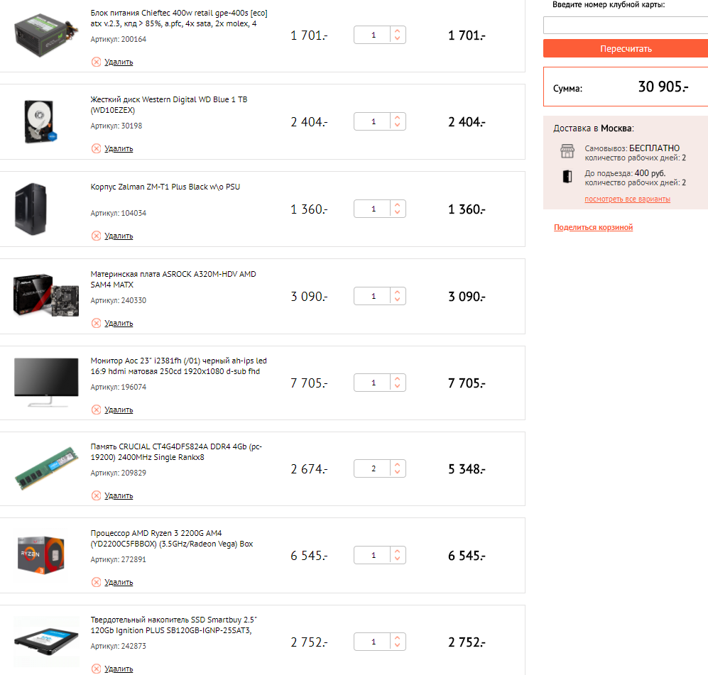 Здравствуйте! 1 30 000 р 2 Москва. Без разницы. 3 Системный блок, монитор. Хотелось бы и windows с офисом в эти деньги поместить. 4 Для пенсионера. Почта, ютюб, word, exel. Хранение большого объема данных не планируется. 250гб выше крыши. 5 Нет 6 Нет 7 Нет 8 Системный блок - чем меньше, тем лучше. Монитор 1980x1080. 9 Нет.