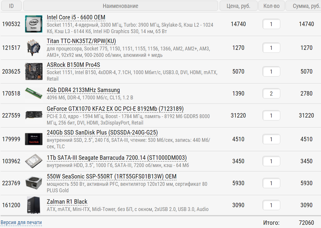 Всем привет! Знакомый попросил помочь со сборкой, обращаюсь к вам. Бюджет 72к, из железа ничего нет. Собирается игровой конфиг под FullHD. Разгон по возможности, магазин Регард. Заранее спасибо!