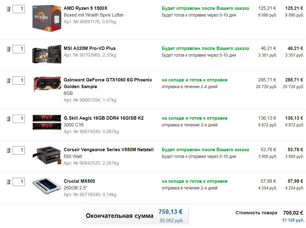 Стоило изучить что тянуть корпус с CU дело неблагодарное, ну и мать/проц не те выбраны, https://www.computeruniverse.ru/product ... o4-atx.asp + https://www.computeruniverse.ru/product ... -boxed.asp разумней, ну и крайне желателен нормальный кулер(а какой сейчас неизвестно). В итоге обычная сборка из разряда пусть кака зато интел, SSD естественно NVMe и БП как всегда с запасищем полуторакратным. Что у вас за чудо-работа такая где нужен строго интел пусть и старый по конь-цене кстати?