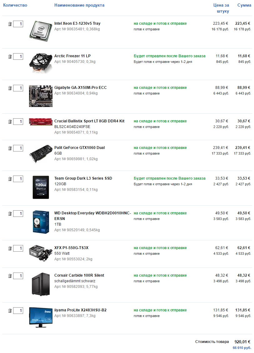 В конце сентября буду собирать новый комп, с железом до конца не определился, прошу вашего совета, все ли из этого будет работать, и что можно заменить в угоду экономии и тишины желательно. Бюджет 75-80к максимум, покупать буду в ситилинке или технопоинте, г.Ставрополь. 1. БП: Cougar STX550 или AEROCOOL KCAS-600W 2. проц: Intel Core i7-6700 3. ВК: Gigabyte GeForce GTX 1060 G1 GAMING 4. Опертаивка: CORSAIR Vengeance LPX DDR4 - 2x 8Гб 2133 5. МП: ASRock H170 PRO4 6. Кулер: DEEPCOOL GAMMAXX 200 T 7. HDD: TOSHIBA P300 HDWD120UZSVA, 2Тб 8. SSD: SSD OCZ Trion 150 - 240G 9. Zalman Z3 Plus