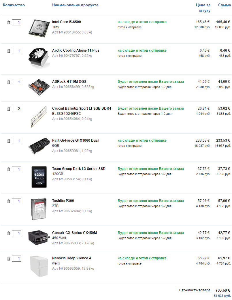 Спасибо. Свой набор частично изменил под Ваш вариант. Только вместо AsRock H110M DGS думаю всё же взять ASRock H110M HDV - порты Sata удобнее расположены. Ну и корпус Zalman R1 мне больше понравился.