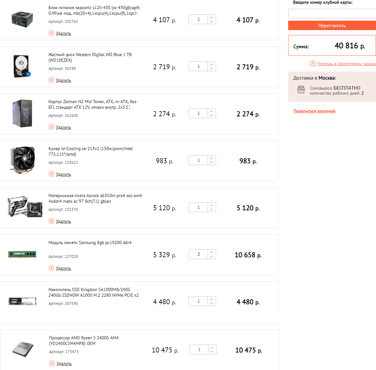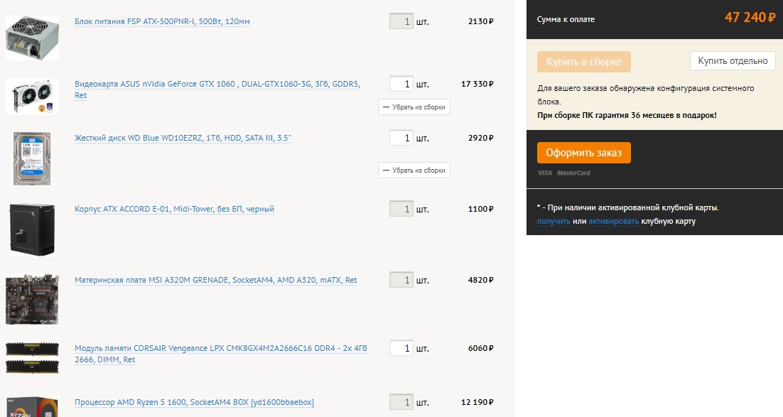 Всем доброго времени суток! Очень давно "завязал" с пк индустрией в целом, свой прошлый компьютер продал еще в году так 14ом(в профиле). Сейчас подумываю собрать железо в целом для игрушек. Основные требования - игра в комфортных условиях на 1920*1080 (FullHD) на высоких настройках в игрушках 16-19 годов. Под комфортом я понимаю 60 фпс. Немного "покурил" форум, давно от всего этого отстал... Наклепал такую сборку. Можете оценить? бюджет 45-50 не больше ни меньше, так как еще монитор буду брать. Магазин либо ситилинк, либо днс. Единственное что есть в мое городе (Салават)