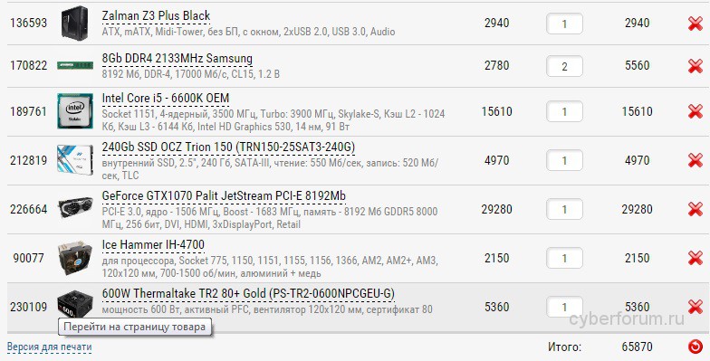 После долгих раздумий, подобрал конфу на GTX 1070 + I5-6600K + Z170 Подскажите, что можно изменить ? Или все нормально ? Есть ли слабые места ? Нужно в 80 т.р. уложиться. Может материнку взять подешевле ?