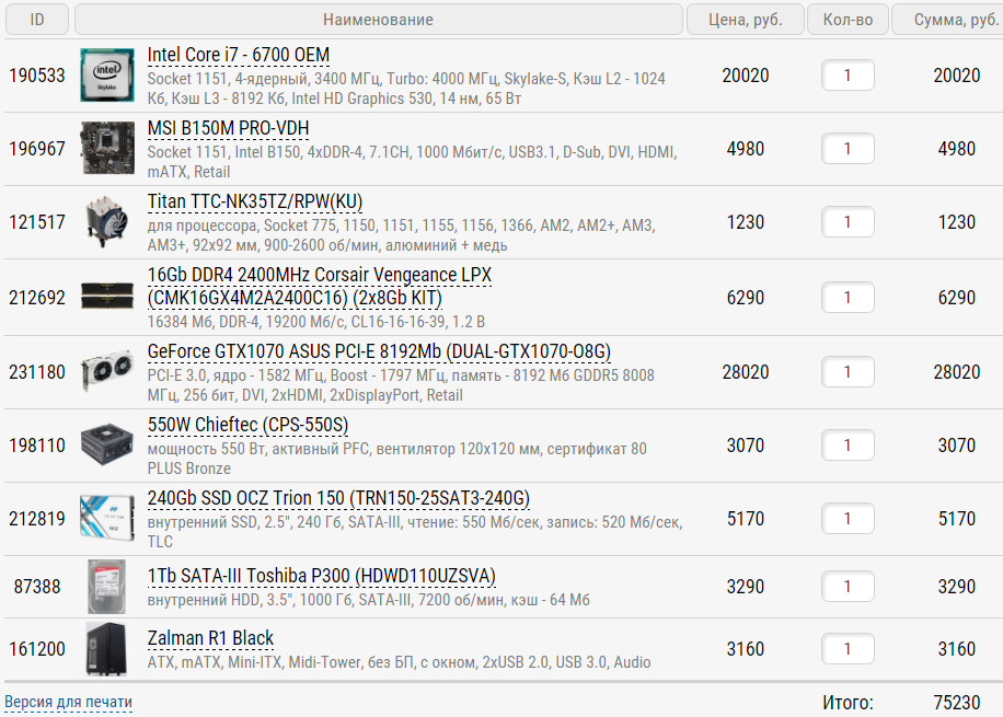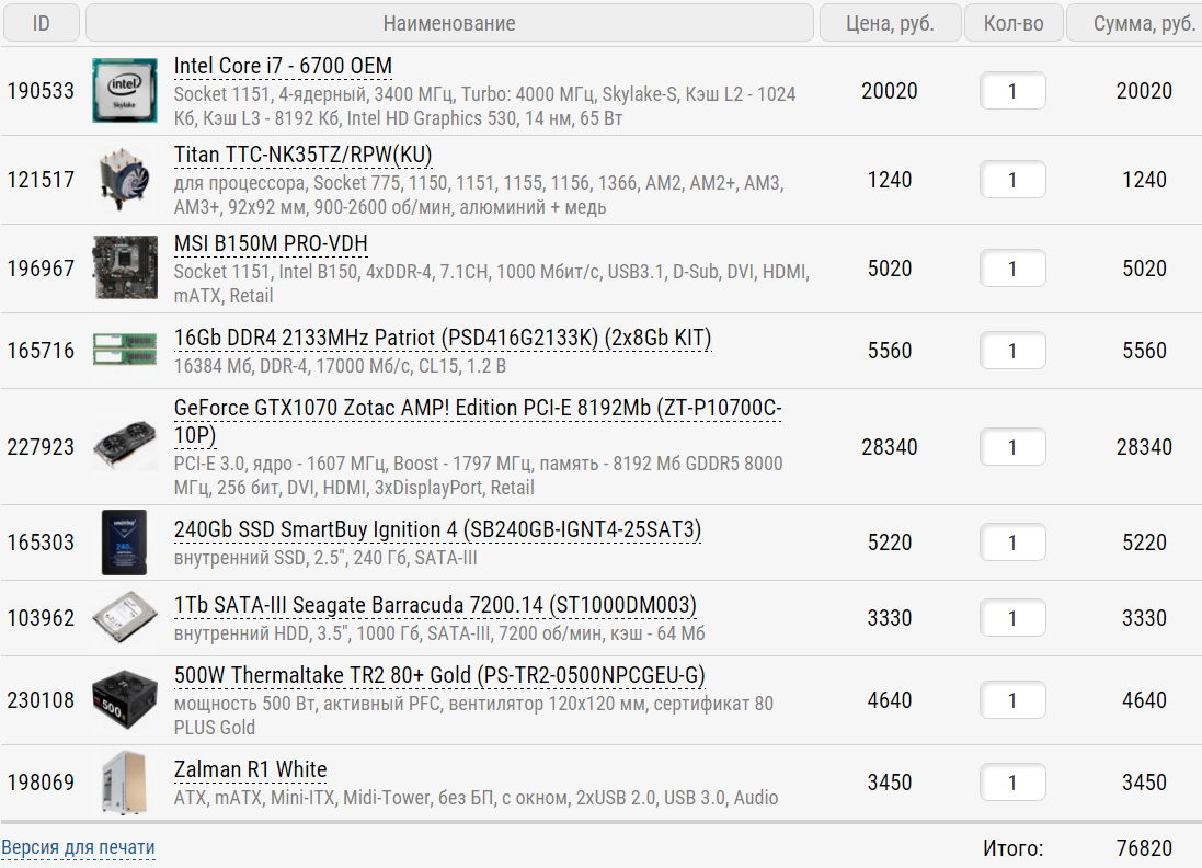 На ОЗУ гарантия 5 лет, так что можно не париться. У ASUS DUAL GeForce GTX 1070 OC всего 2 шт. 8-миллиметровых трубки. За доплату 320 руб. лучше взять уже нормальную карту: https://www.techpowerup.com/reviews/Zot ... Amp/4.html. Правда на год меньше гарантии. SSD на MLC при доплате 50 руб. HDD на год больше гарантии за 40 руб. На БП лучше не экономить и добавить до минимально-приемлемого уровня Thermaltake TR2 80+ Gold. PvP, думаю, добавить 2% бюджета - не проблема?