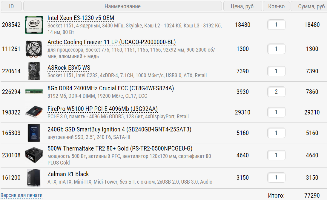 Добрый день, нужна помощь в выборе 1) 80 тыс. рублей +- 2) Москва, регард например 3) Только системник 4) В первую очередь для solidworks. Нужен рабочий системный блок на рабочее место на предприятии. Наброски конфигурации: как я понимаю это core i7, графика nvidia Quadro, 16gb оперативной памяти и SSD. Есть ли смысл в профессиональной графике? Разного начитался в интеренете