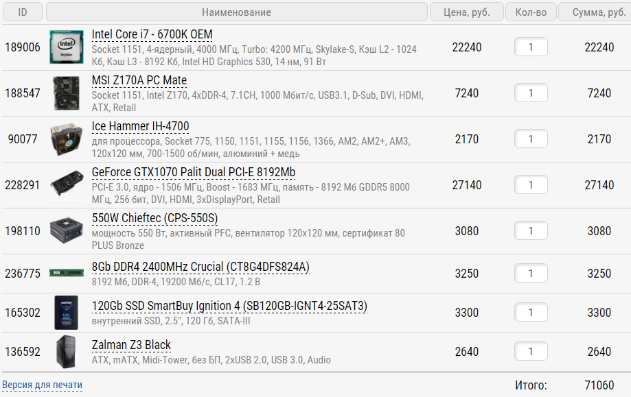 1) до 70000р 2) Регард 3) Только системник (с SSD под систему) 4) Для игр в разрешении 1080х1920 5) Не разу не гнал,хотелось бы попробовать) 6) Хотелось бы купить компьютер с запасом в 2-3 года 7) Есть старый Chieftec GPS-560AB-A и WD Caviar Black WD7502AAEX )) 8) Хотелось бы все собрать на i7 и gtx 1060. 9) -----------