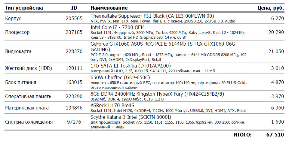 WIZL Практически за те же деньги можно взять так: По факту, имеем тихий БП, хорошую тихую карточку и 16гб ОП. Переплачивать за видеокарту от Asus нет смысла. Что касается процессора - разница в производительности между 6700 и 7700 незначительна, да и биос нужно будет обновлять.