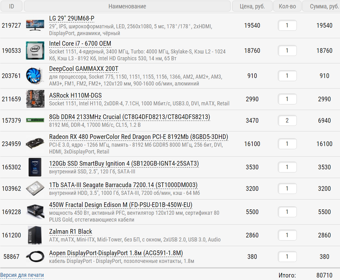 Пост оформлять следующим образом: 1) Бюджет 2) Линк(и) на прайс магазина(ов), где будете брать систему, обязательно укажите Город в котором будет покупаться. 3) Что собираетесь брать: - Только системник - Ситемник и монитор - Системник, монитор и переферия - Иные уточняйте какие варианты. 4) Указывайте для каких задач берётся сабж. а) Для игровых систем: - Указывайте разрешение монитора, частоту развертки, аппаратную синхронизацию (Free|G-Sync), есть на нём цифровые входы (HDMI|DVI|DP) или модель монитора, а также параметры анизотропной фильтрации и сглаживания, которые будут использоваться в играх. - Указывайте названия игр или хотябы жанры. б) Для систем, на которых будет слушаться Музыка: - Уточняйте, что за ММАС Мультимедийная Акустическая Система у Вас стоит или планируется к приобретению. - Уточняйте носитель/тип файлов/битрейт. - Уточняйте жанры Музыки. в) Для графических станций: - Уточняйте какой монитор используется. - Уточняйте с какими программами Вы будете работать. г) Иные. 5) Уточняйте планируете ли Вы разгон системы. 6) Уточняйте планируете ли Вы апгрейд системы в ближайшие 6 месяцев. Если планируете, то сообщайте когда и в каком объёме финансовых вливаний. 7) Если у Вас есть какое-то железо, которое Вы ещё планируете использовать, уточняйте какое именно. Если его много, то Вам в ветку по Апгрейду. 8) Если у Вас есть какое либо требования, уточняйте: - Брендовая принадлежность ATI/AMD или Abit/DFI, ets. - Требования по дизайну/размерам. - Требования по шуму. Уточняйте здесь. - Иные. 9) Наброски конфигурации ПК