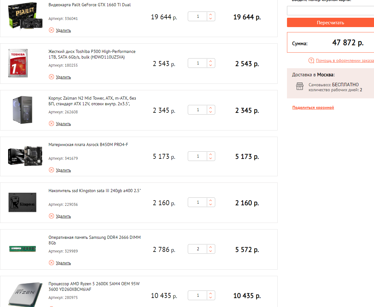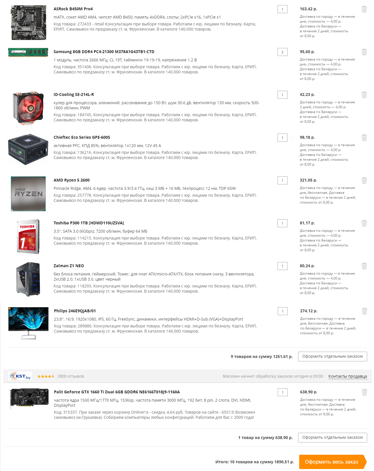 Спасибо. Есть ли смысл брать rx590 вместо 1660ti/rx580? Бп и монитор в данный момент не рядом. Магазин нужен в котором все можно купить сразу и завтра.