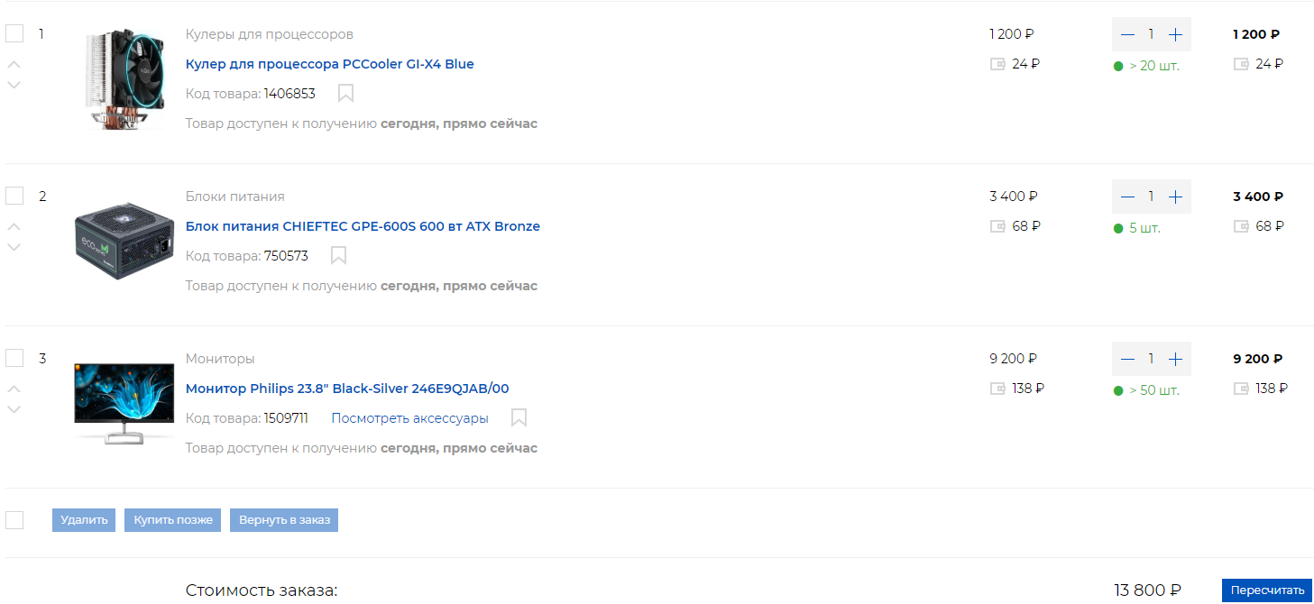 Желательно указать модели или дать ссылки на них. ------------------------------------ Итого: 40 581 руб.