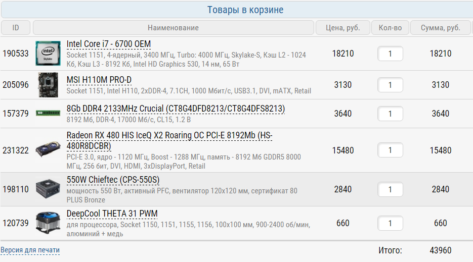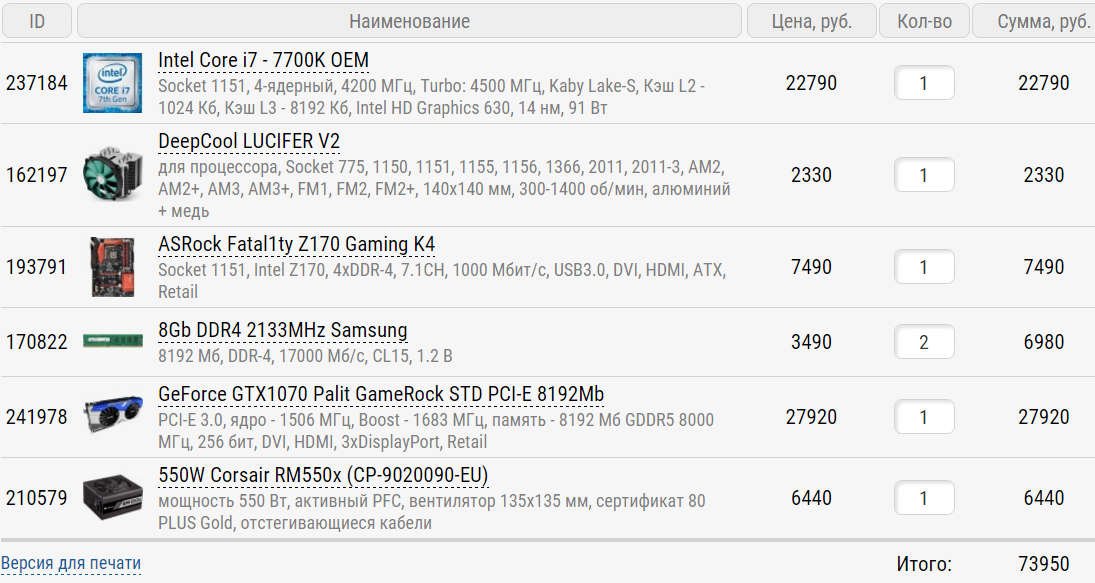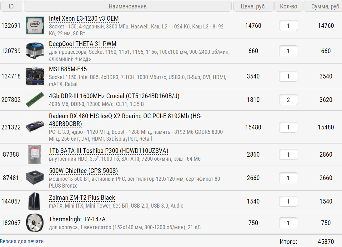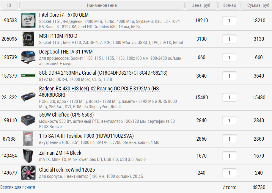 Если друг захотел всего лишь обновиться и денег в обрез то немого можно изменить сборку, предложенную вам выше. 1. Не обязательно покупать новый корпус, можем использовать старый. 2. Не обязательно покупать новый жесткий диск(HDD). Уточните, если на старом интерфейс SATA(разъём проще говоря) то вполне можно его использовать и далее. В итоге получаем немного другую цифру без жертв производительности, освободившиеся финансы можем вложить в видеокарту, в идеале хорошо бы 1070 вместо rx480 http://www.regard.ru/catalog/tovar231180.htm Но тогда минимальная цена >53 тыс.. А так, если экономим то получаем вот что:
